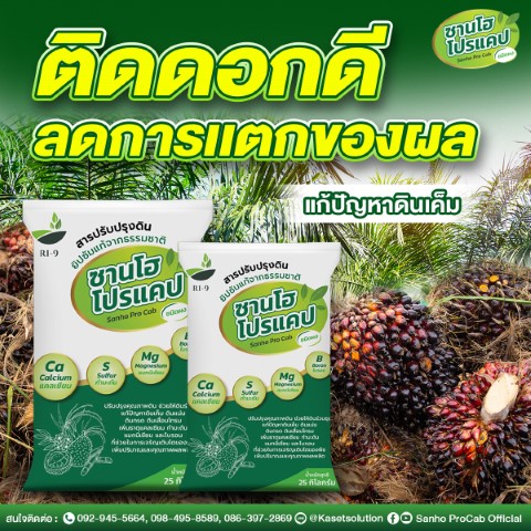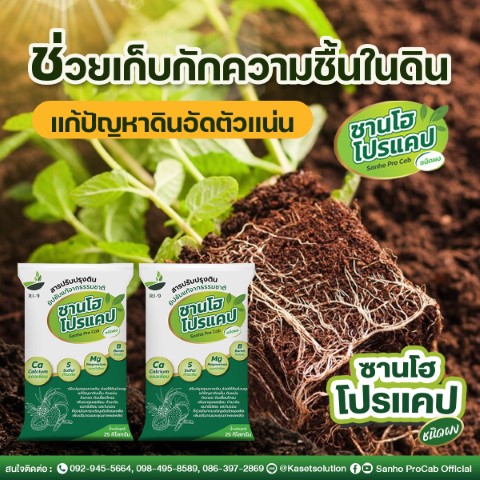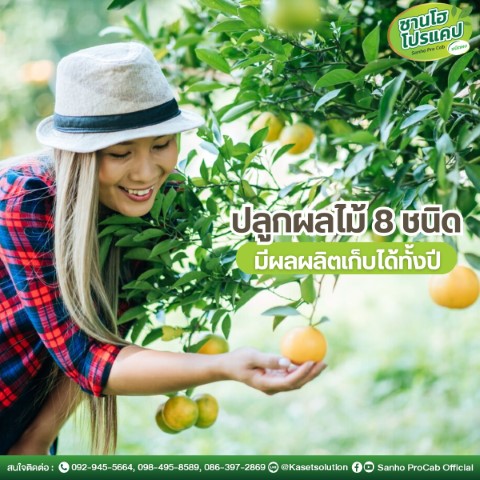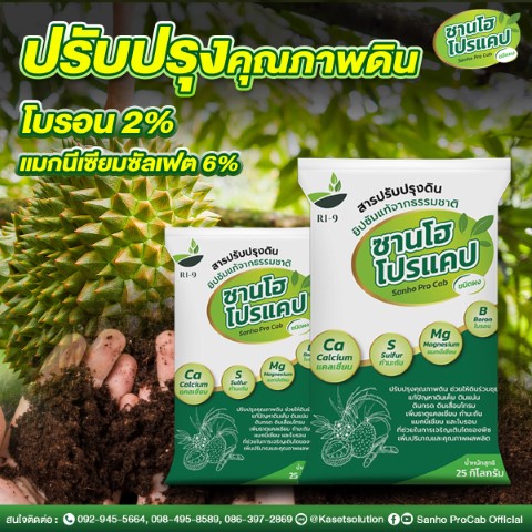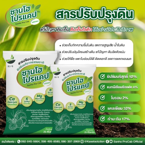 Kaset Solution ติดต่อสอบถาม/สั่งซื้อผลิตภัณฑ์ ▾ Facebook : Sanho ProCab Official Tel : 092-9455664, 098-4958589, 086-3972869 092-9455664 Sanho ProCab Official @KasetSolution ปลูกผลไม้ 8 ชนิด มีผลผลิตเก็บได้ทั้งปี ปรับปรุงคุณภาพดิน ด้วย 𝗦𝗮𝗻𝗵𝗼 𝗣𝗿𝗼𝗖𝗮𝗯 อุดมไปด้วยธาตุอาหารที่เป็นประโยชน์ต่อพืช ยิปซั่มบริสุทธิ์ 92% แมกนีเซียมซัลเฟต 6% โบรอน 2% แคลเซียม 32% กํามะถัน 17% 092-9455664 Sanho ProCab Official @KasetSolution ติดต่อสอบถาม/สั่งซื้อผลิตภัณฑ์ ▾ Facebook : Sanho ProCab Official Tel : 092-9455664, 098-4958589, 086-3972869